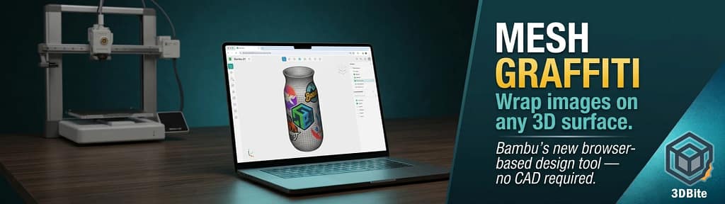 Mesh Graffiti solves a specific problem that has been a genuine friction point in the personalisation workflow: getting images and text to wrap correctly onto curved 3D model surfaces without opening CAD software. The tool does this in a browser, requires no installation, and exports directly to a Bambu Studio-compatible 3MF with colour zones pre-assigned. For logos on cylindrical objects, names on gifts, team badges on model bases, or any scenario where a graphic needs to conform to a non-flat surface, it removes a step that previously took anywhere from twenty minutes to several hours depending on your software familiarity.