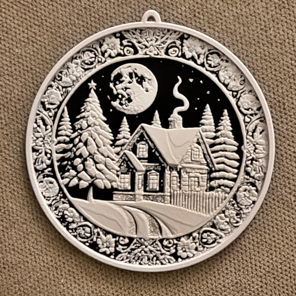 This Christmas ornament by Sebo3D produces a detailed winter scene with a layered relief effect. It prints cleanly on an FDM printer using colour changes to bring out the foreground and background. I printed it in two contrasting PLA colours to achieve a crisp decorative look suitable for the Christmas tree or as a small seasonal gift.