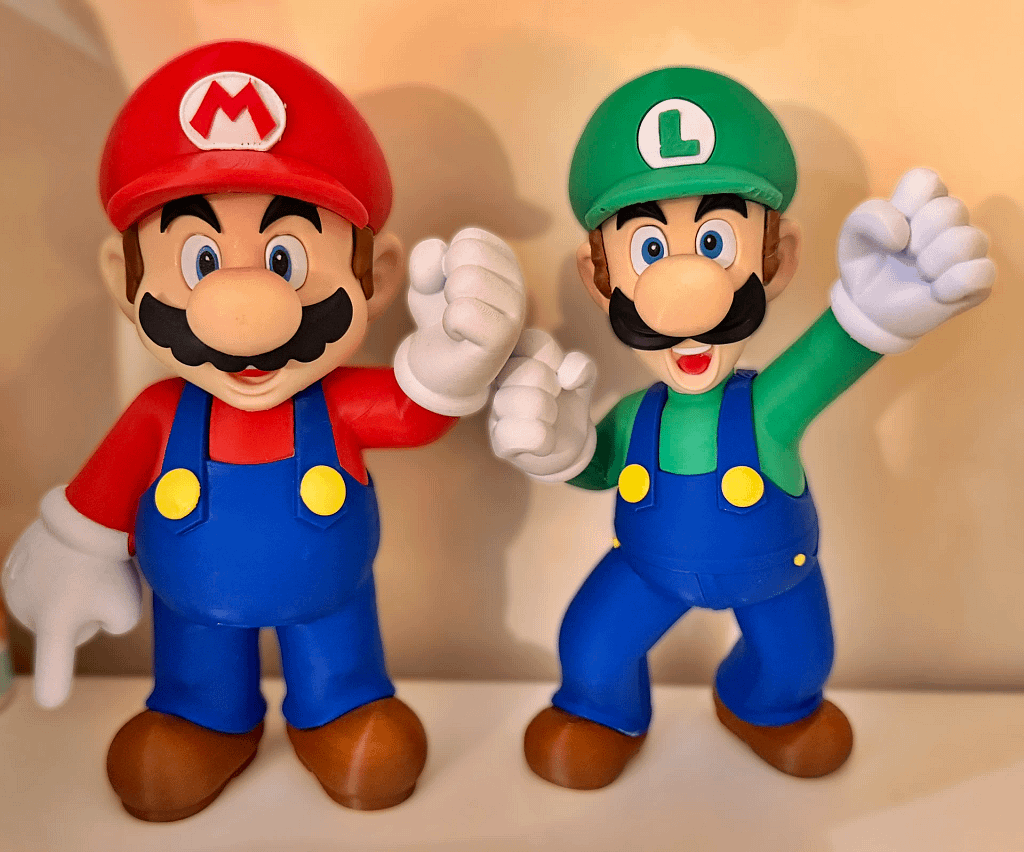 My godson’s reaction was everything you want from a print like this. The figures went straight onto his shelf, Mario and Luigi side by side, which is exactly where they should be.
